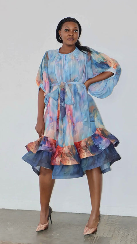 The dramatic high-low hem reveals a layered statement finish, adding depth and dimension to the design. Lightweight and airy, it offers graceful volume without feeling heavy — perfect for weddings, garden parties, formal events, and special celebrations.
