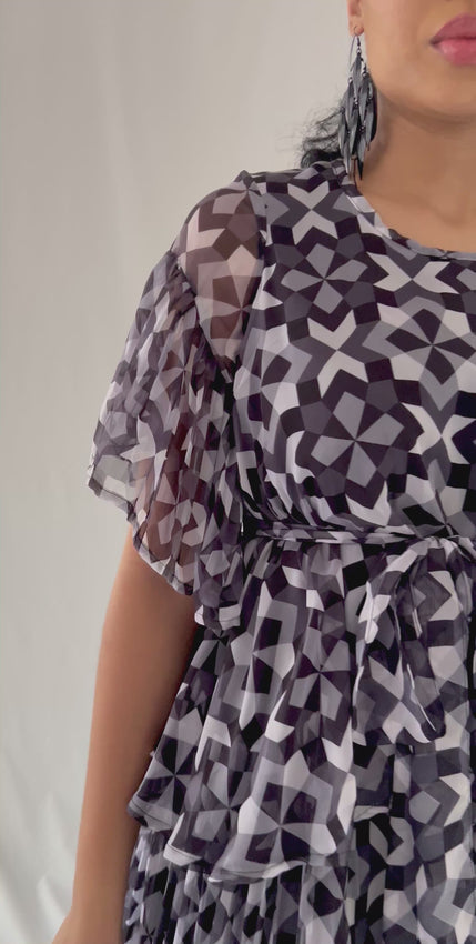 Kwenadi Midi Tier Dress (Black & White)
